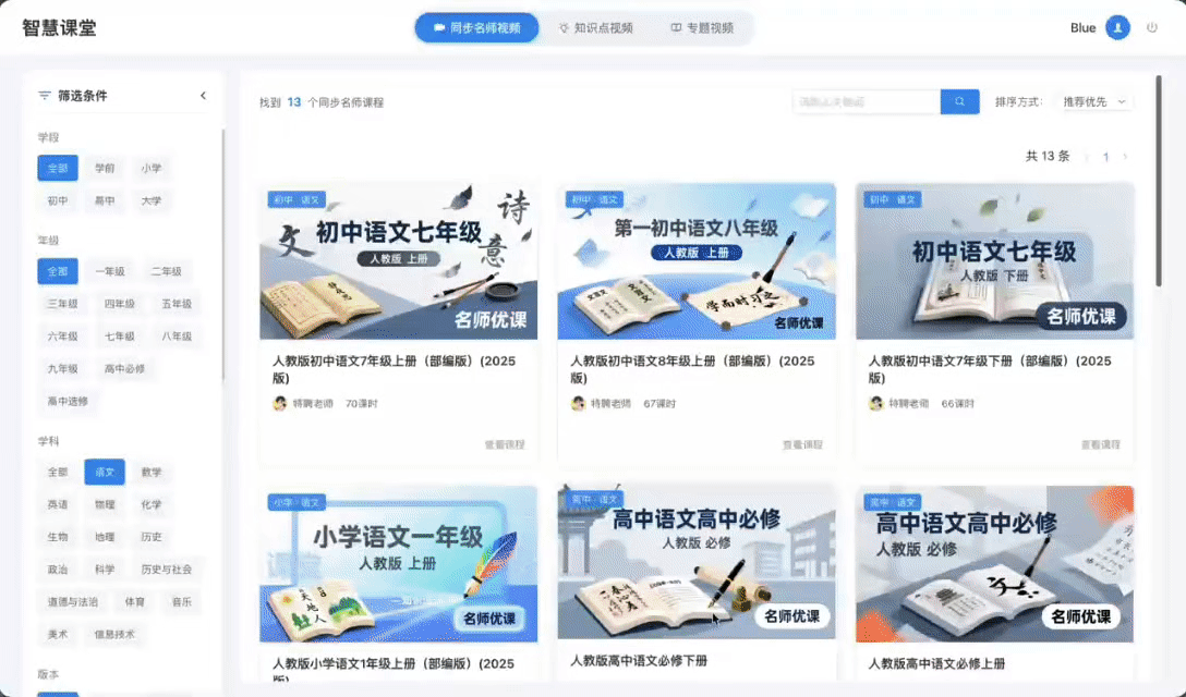 覆盖小学至高中全学段、全学科及市面主流教材版本,30000+ 课程视频实现精准教研。无论用户身处何种教学场景,均可快速匹配所需内容,一站采购,全面覆盖